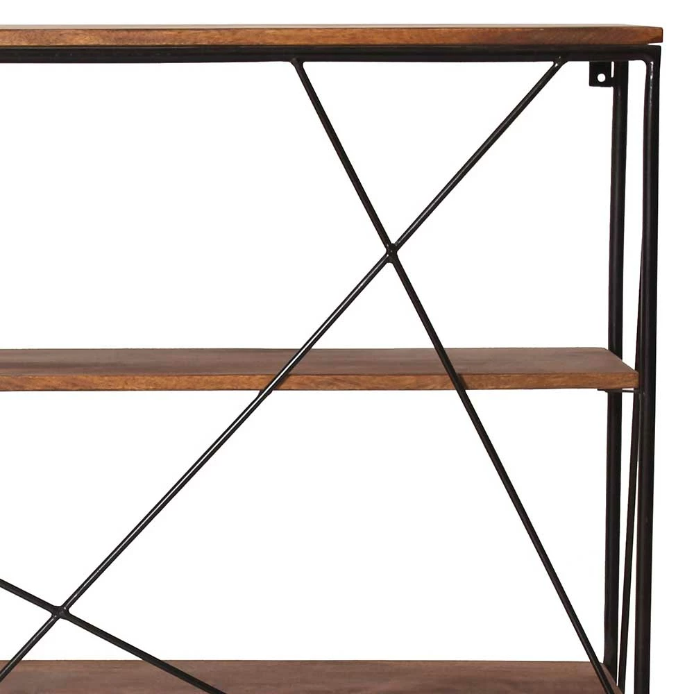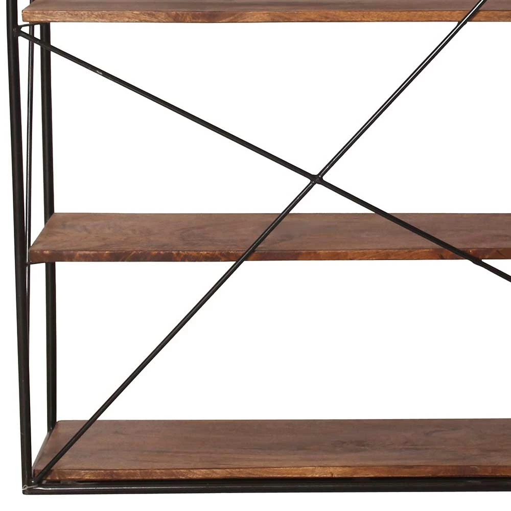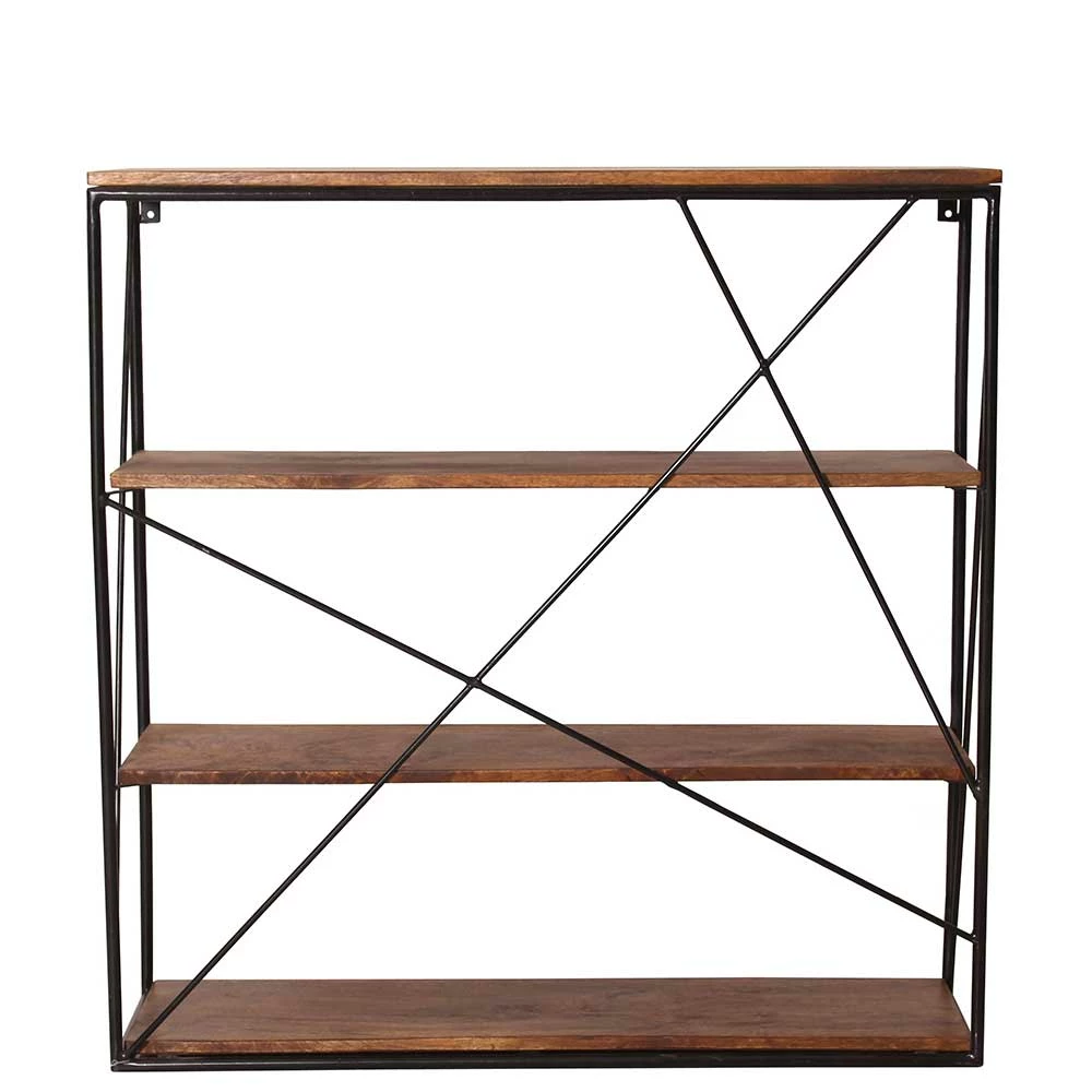 - Robustes Hängeregal in Mangoholz Naturfarben und Schwarz