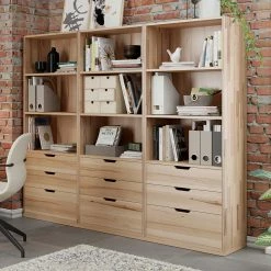 65x170x33 Kernbuche Regal Mit Drei Fächern – Tilla