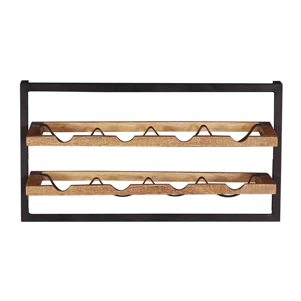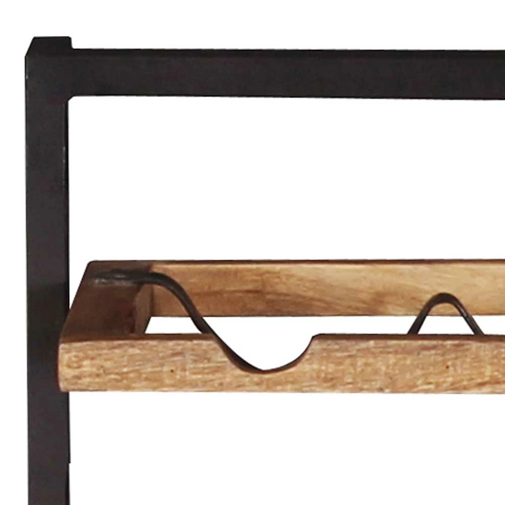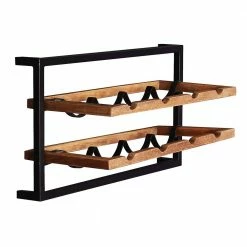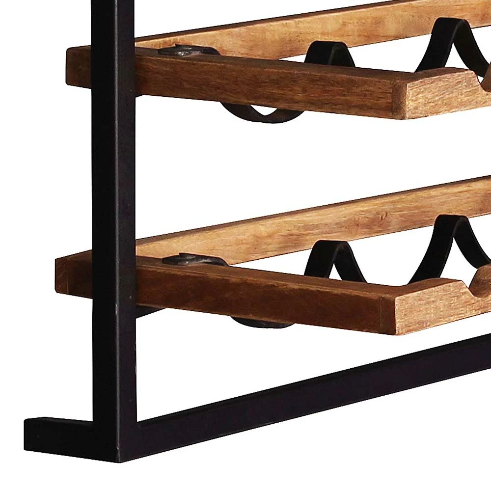 - Attraktives Weinregal in Mangoholz Naturfarben und Schwarz