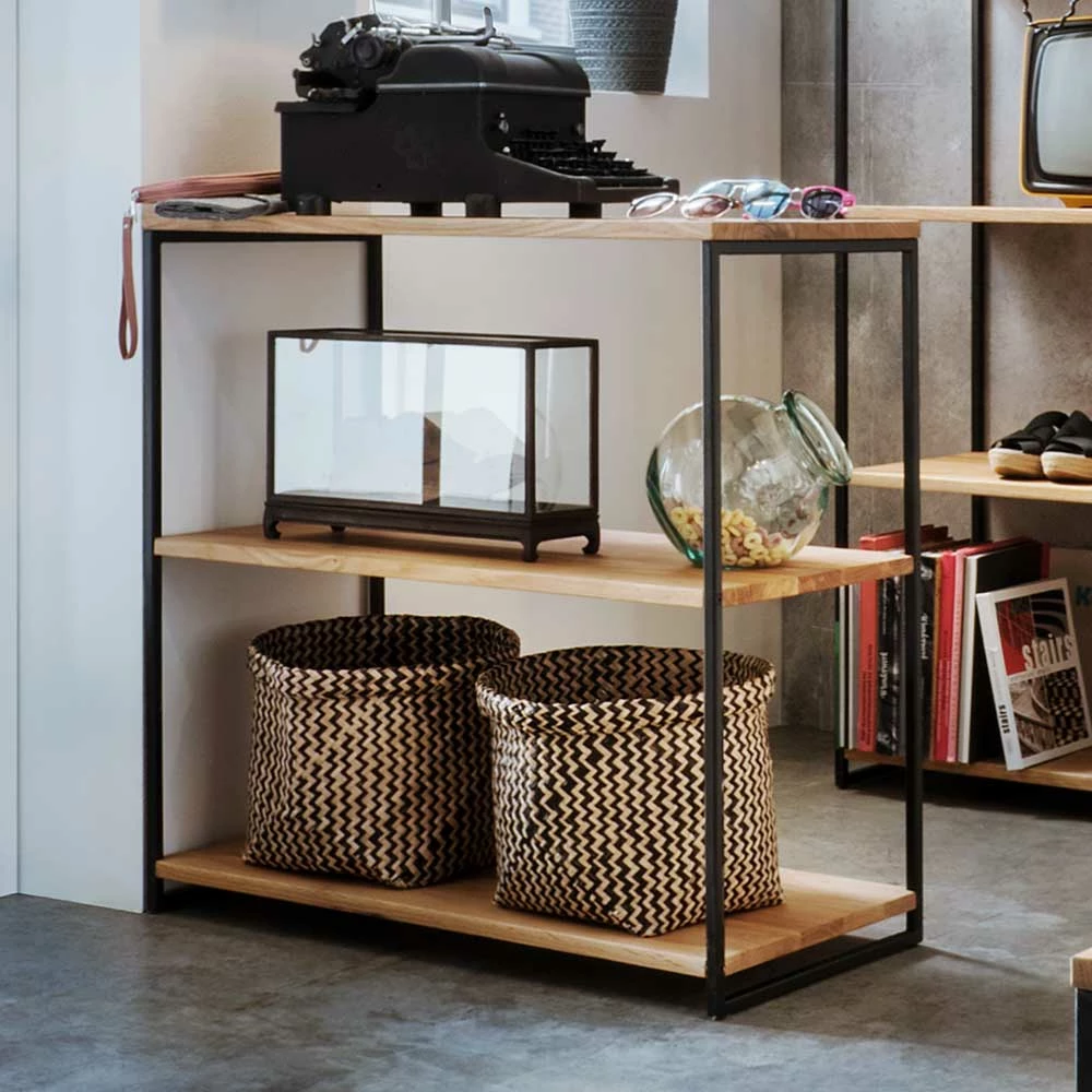 - Kompaktes Raumteiler Regal in Wildeiche und Schwarz