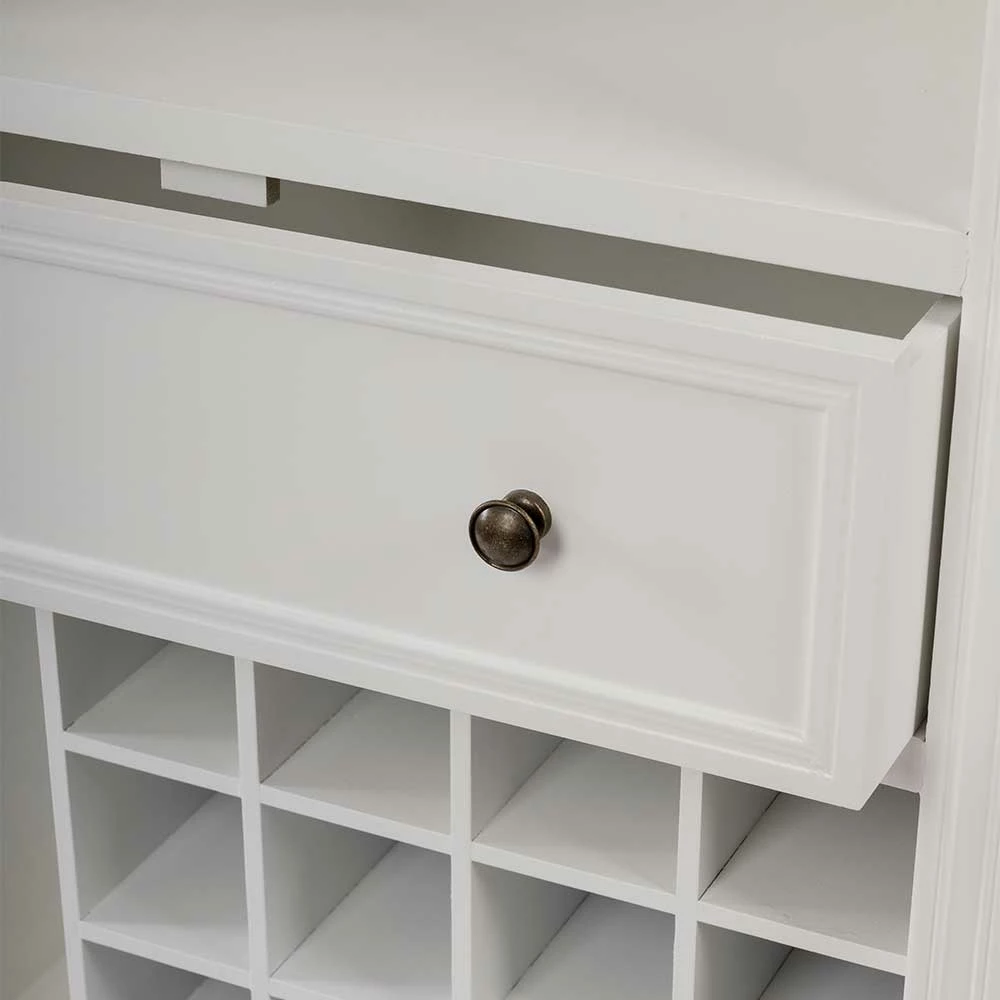 - Eine Schublade auf Holzauszug mit Metall-Knopfgriffen