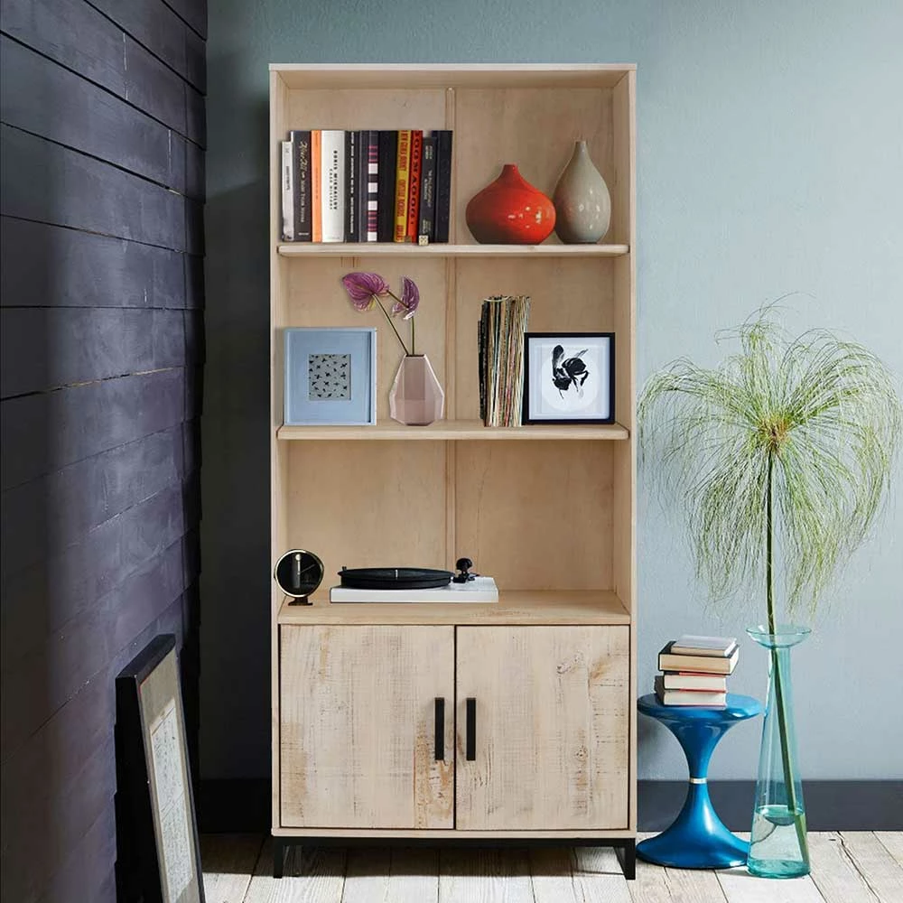 - Modisches Regal in Kiefer White Wash und Schwarz