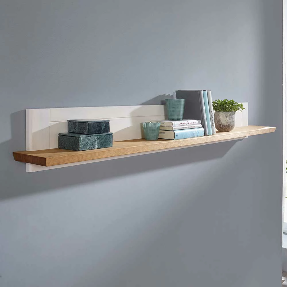 - Stilvolles Wandregal in Weiß und Eichefarben