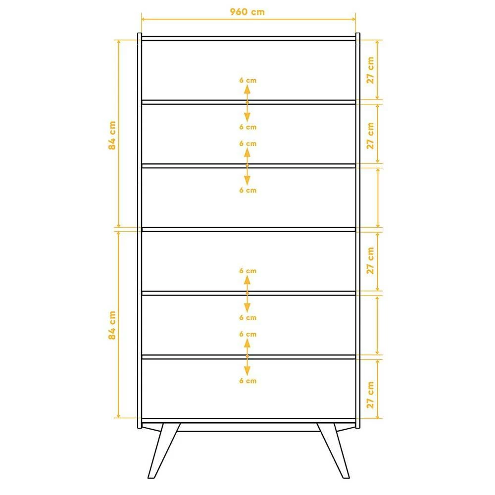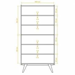 - Vier Einlegeböden die sich je um 3 cm und 6 cm nach oben und unten verstellen lassen, mittig ein Konstruktionsboden, Innenmaße der Fächer: BxH: je ca. 96×27 cm
