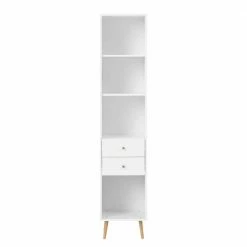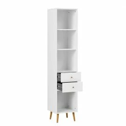Schmaler Büroschrank In Weiß & Eiche – Niuna