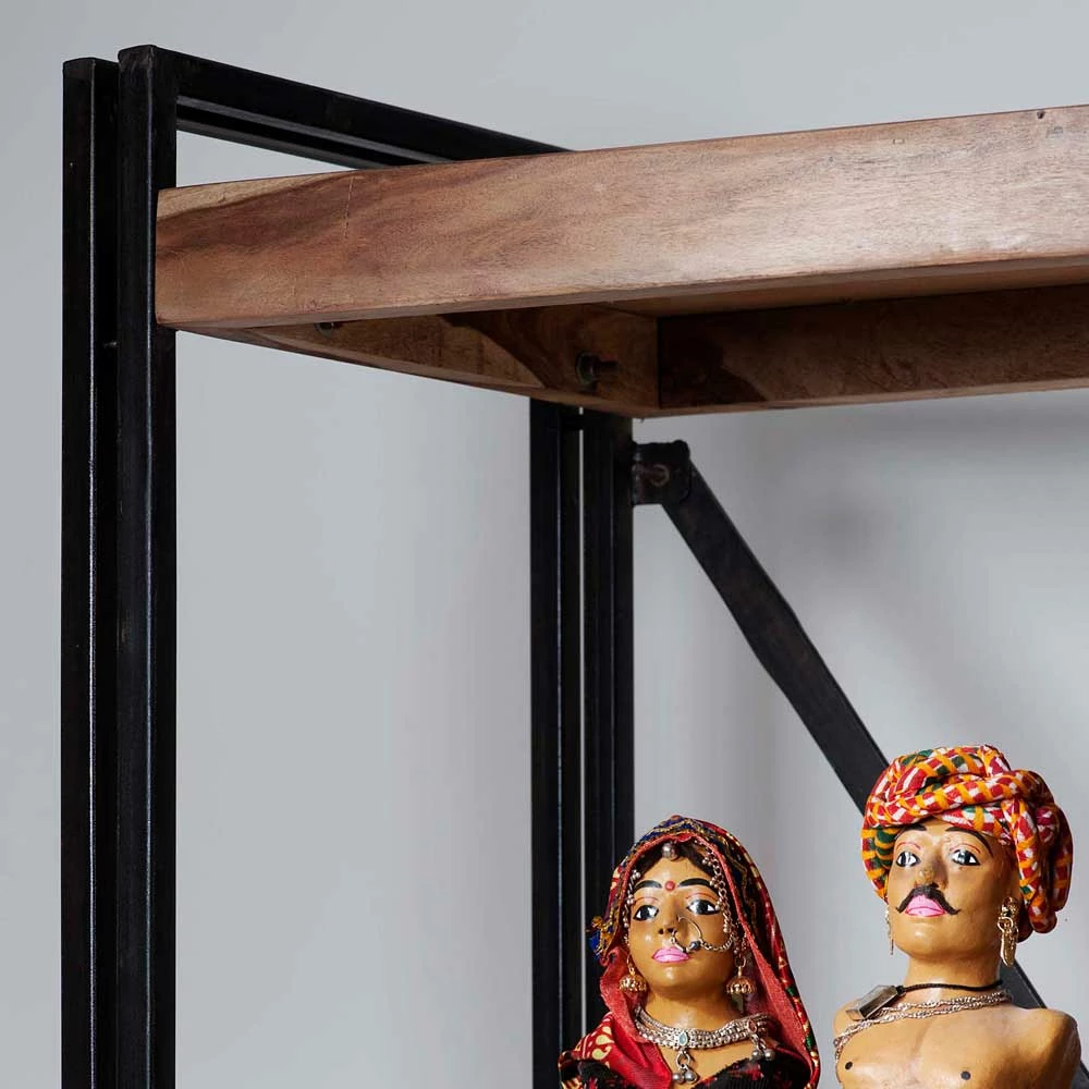- Gebeizte und lackierte Holzoberfläche, Metallgestell antikschwarz lackiert
